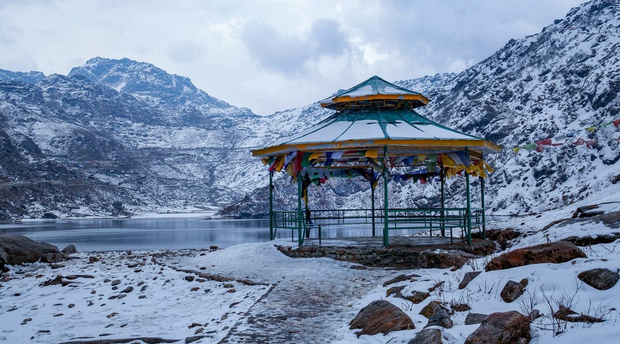 Tsomgo lake is about 40 km from Gangtok and is situated at an altitude of 12,400 ft. The drive from Gangtok takes about 2½ hours. The lake is about 1 km long and oval in shape, 50 ft. deep and is regarded extremely Holy. It is also a home of Brahmini ducks besides stopover for various migratory ducks.